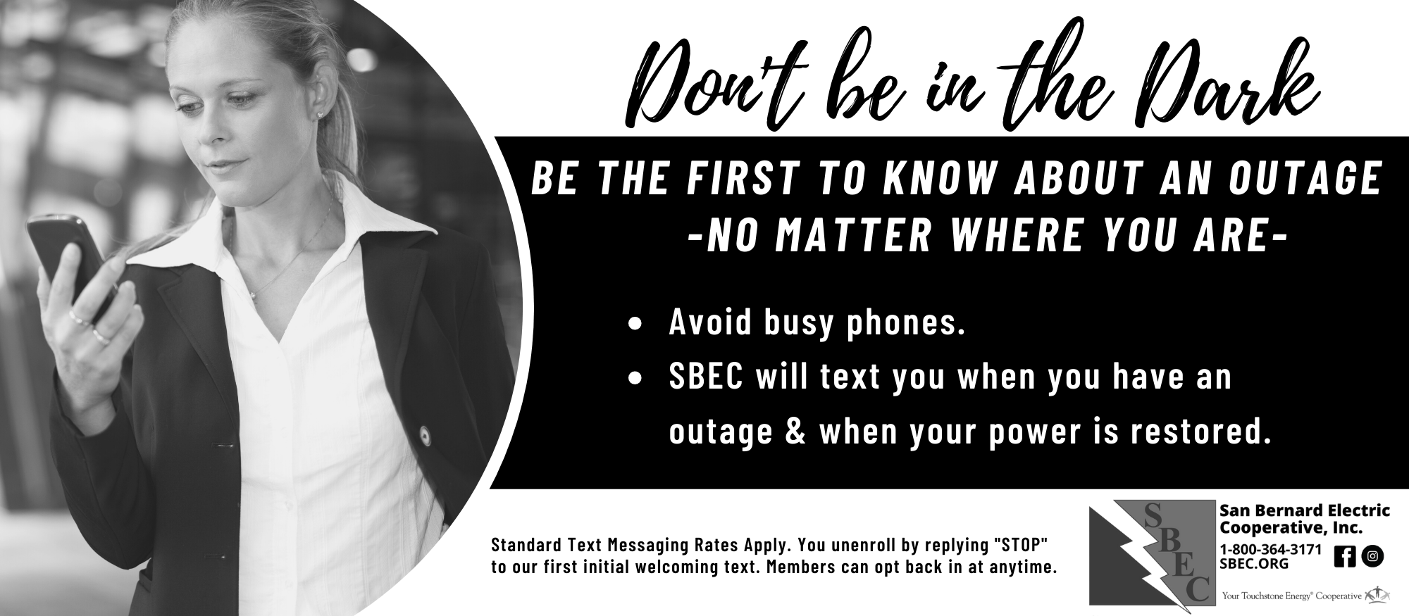 San Bernard EC uses TextPower to communicate outage alerts quickly and directly to your mobile phone. Here’s how to sign up: