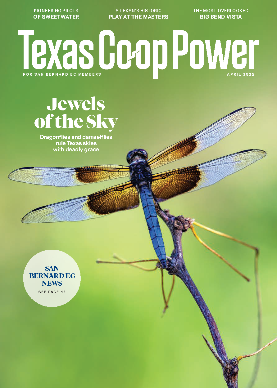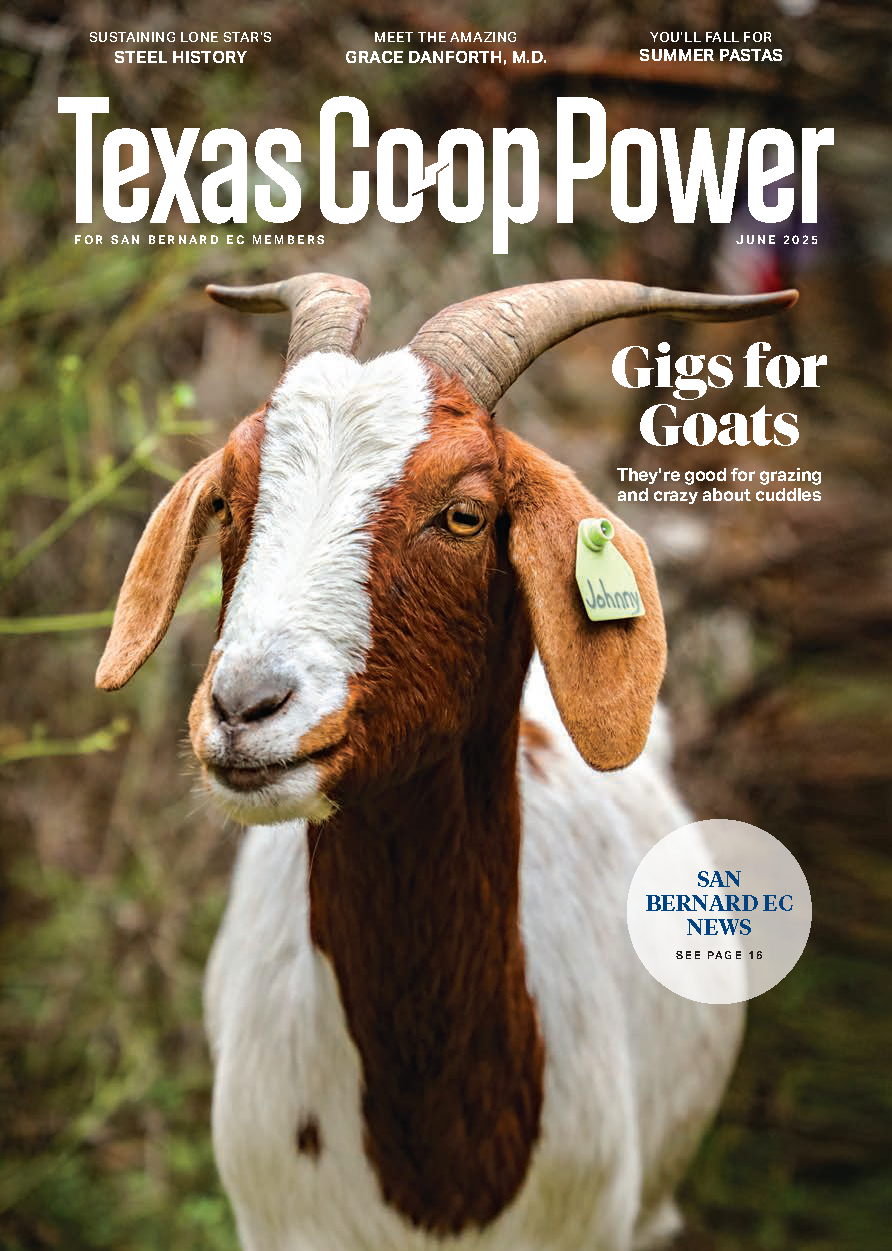 Texas Co-op Power is a monthly magazine that SBEC members receive for free. It is filled with features on people, places, and stories with one thing in common, Texas. It has articles about businesses and events with the center pages being dedicated to SBEC news. These sections are filled with what is happening at your cooperative, energy efficiency tips, our famous "Trading Post", local features of businesses or people, plus much more.