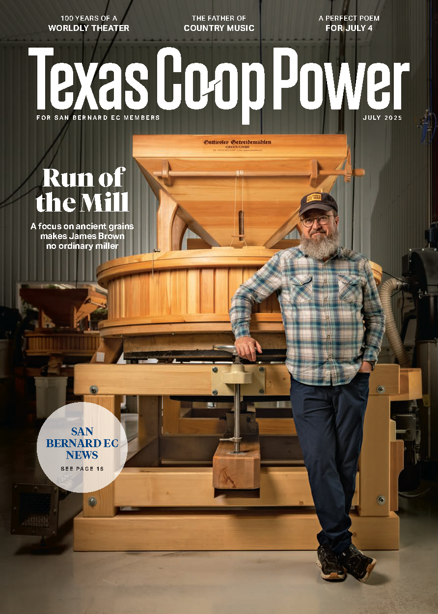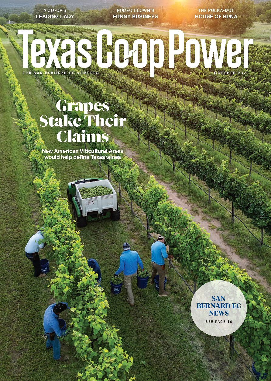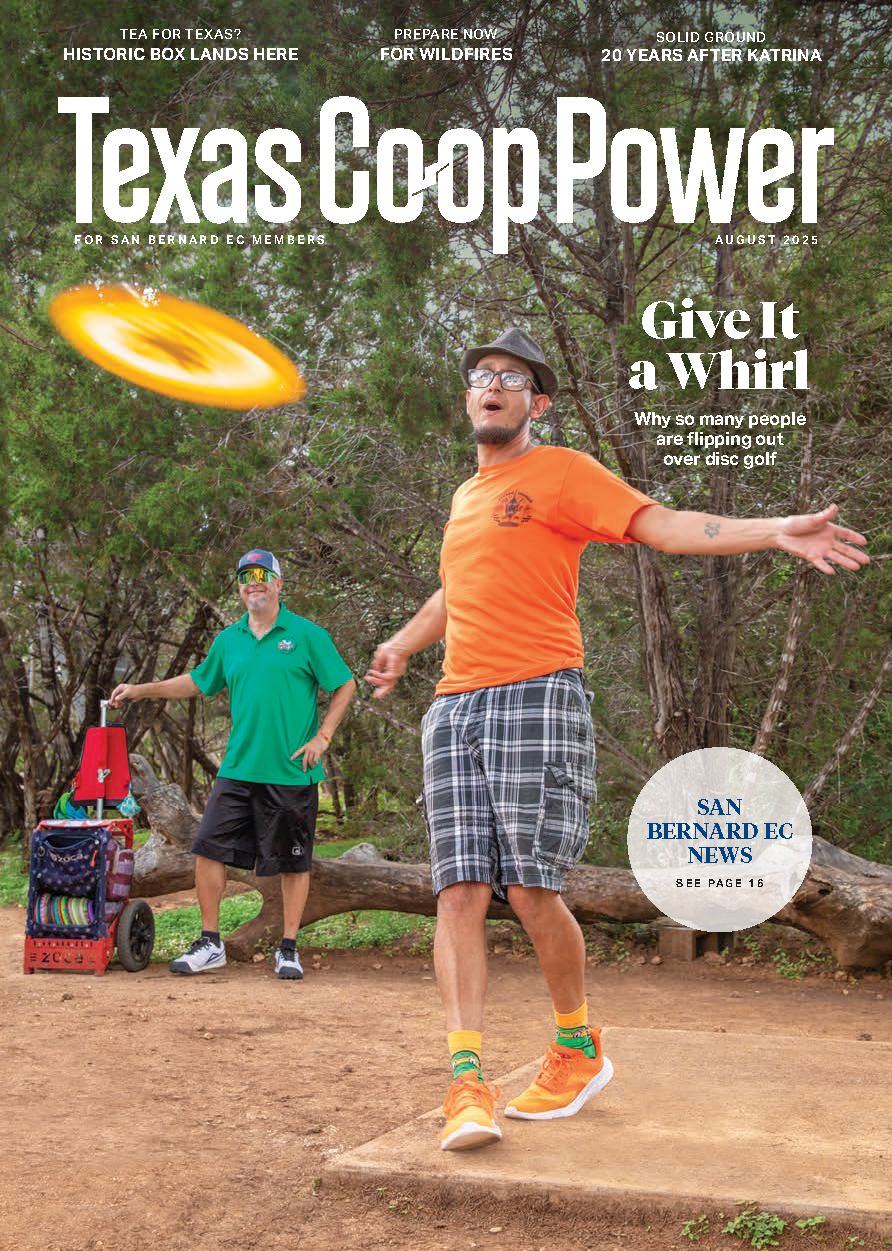 Texas Co-op Power is a monthly magazine that SBEC members receive for free. It is filled with features on people, places, and stories with one thing in common, Texas. It has articles about businesses and events with the center pages being dedicated to SBEC news. These sections are filled with what is happening at your cooperative, energy efficiency tips, our famous "Trading Post", local features of businesses or people, plus much more.